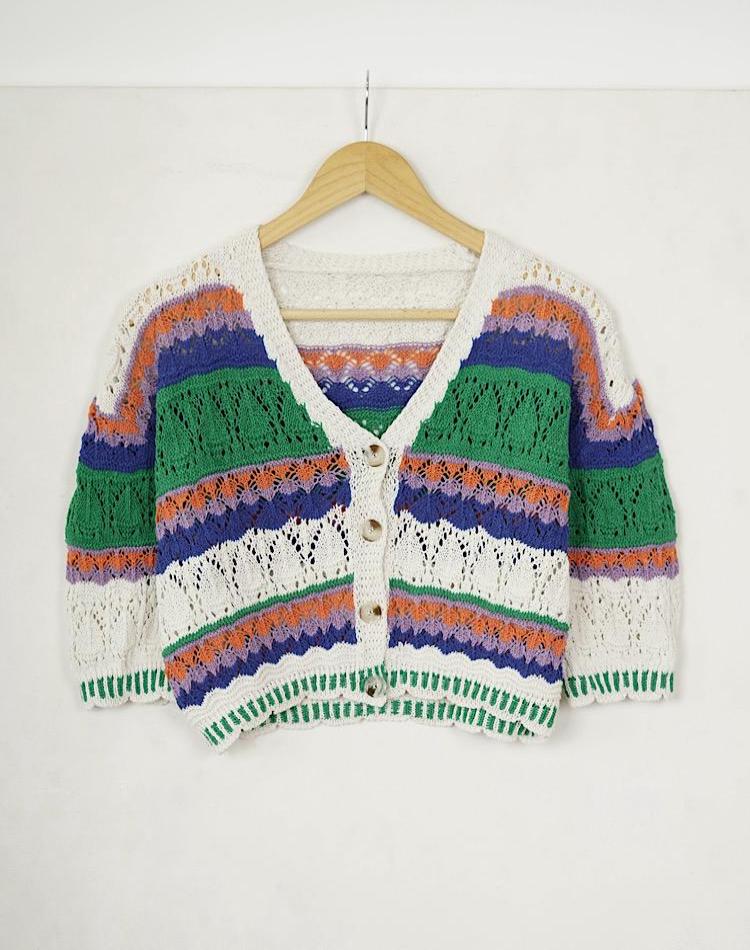 سایز Mدور سینه 100/ دور سینه باکش 120/ دور بازو 36/ قد استین 30/ سرشانه 20/ قد کراپ 40