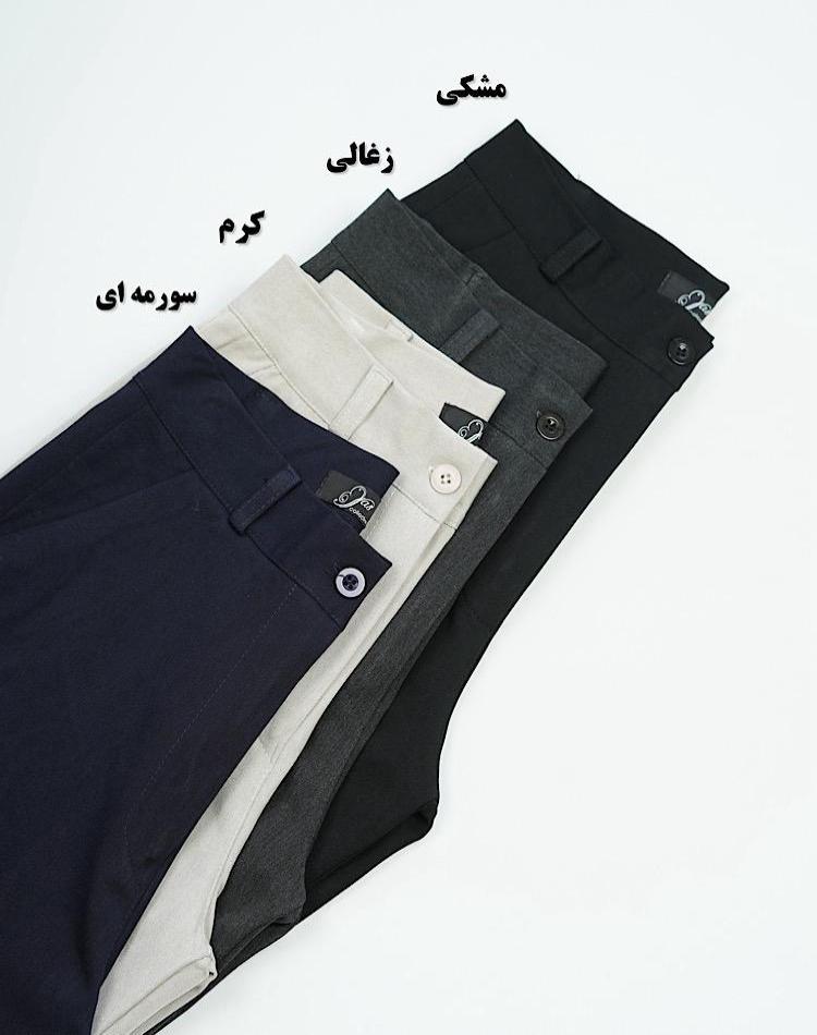 سایز 40دور کمر 76/ دور کمر باکش 80/ دور باسن 106/ دور باسن باکش 108/ دور ران 60/ فاق 34/ قد 87/ دمپا 50